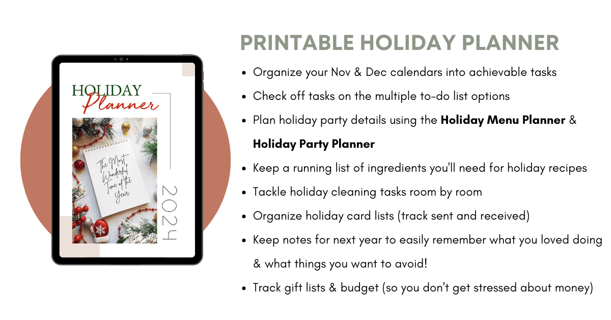 If you answered NO to any of the questions above, the Printable Holiday Planner can help!